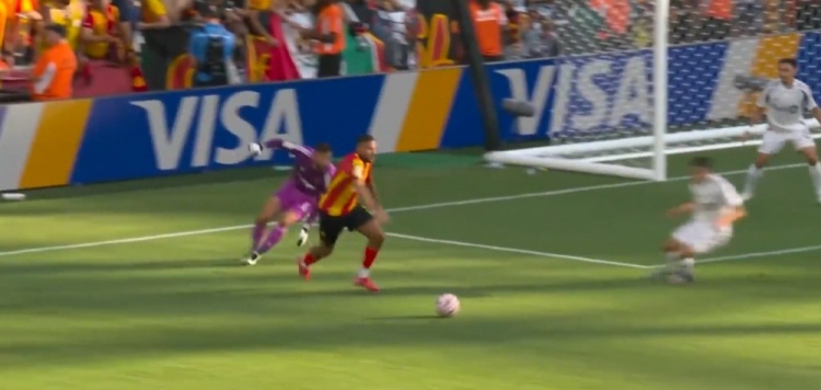 突尼斯希望领先!第70分钟,哈米达突破到禁区被破坏,贝莱利小角度得球后抽射近角,皮球从洛里两腿之间钻入网窝,洛杉矶FC0-1突尼斯希望!↓