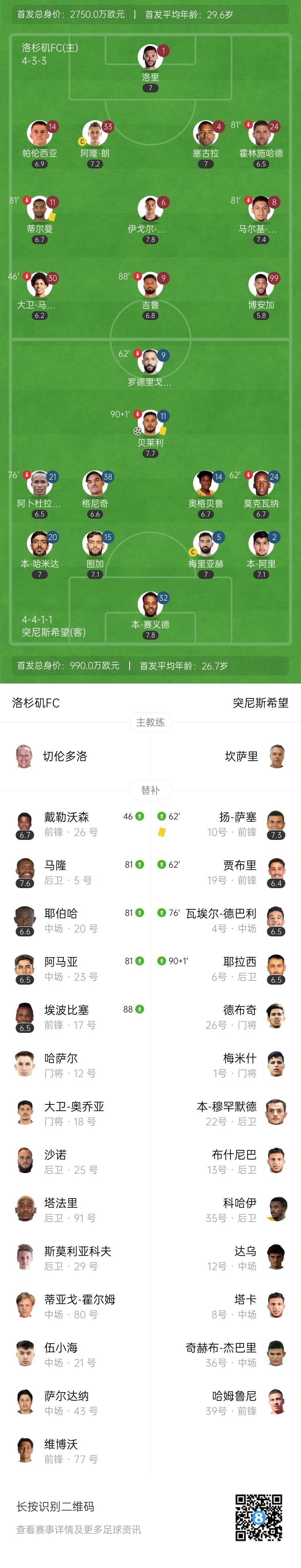全场比赛结束,突尼斯希望1-0战胜洛杉矶FC。