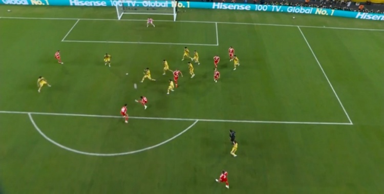 第32分钟,奥利塞接到斜传杀入禁区,半单刀机会尝试过掉门将!被马尔切辛出击断下,错失良机↓