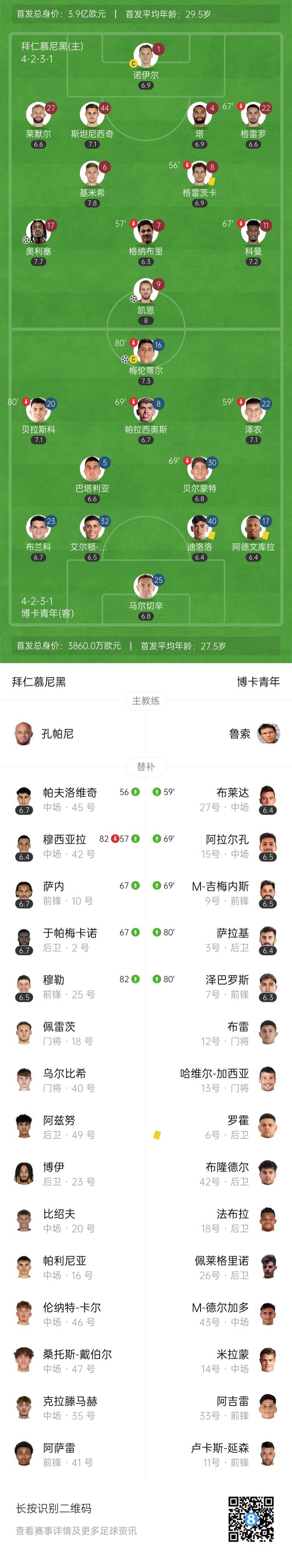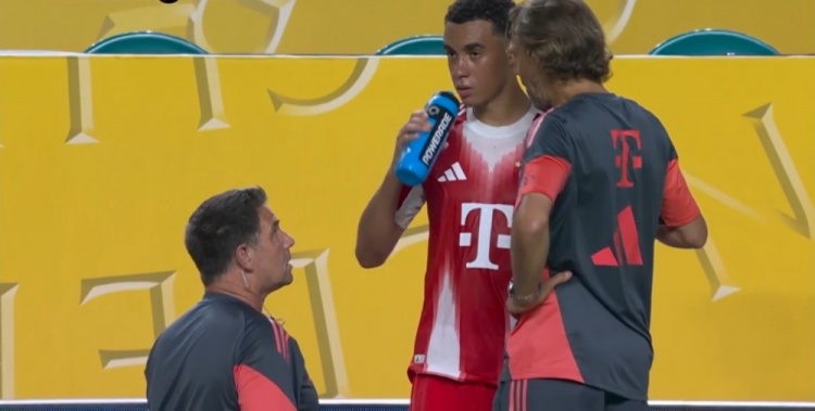 第82分钟,下半场替补登场的穆西亚拉疑似伤情,被穆勒换下↓