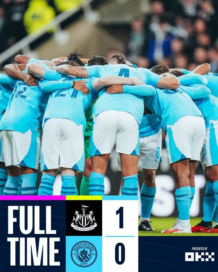 9月28日讯 联赛杯第3轮,曼城客场对阵纽卡。上半场,双方互有攻防但均破门乏术。易边再战,乔林顿精彩助攻伊萨克打破僵局。最终曼城0-1纽卡斯尔,本赛季联赛杯之旅遗憾止步,蓝月亮遭赛季首败,各赛事6连胜遭终结。