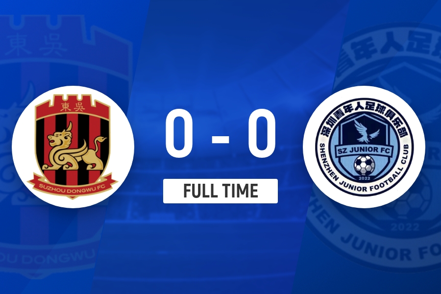 全场比赛结束,苏州东吴0-0深圳青年人。