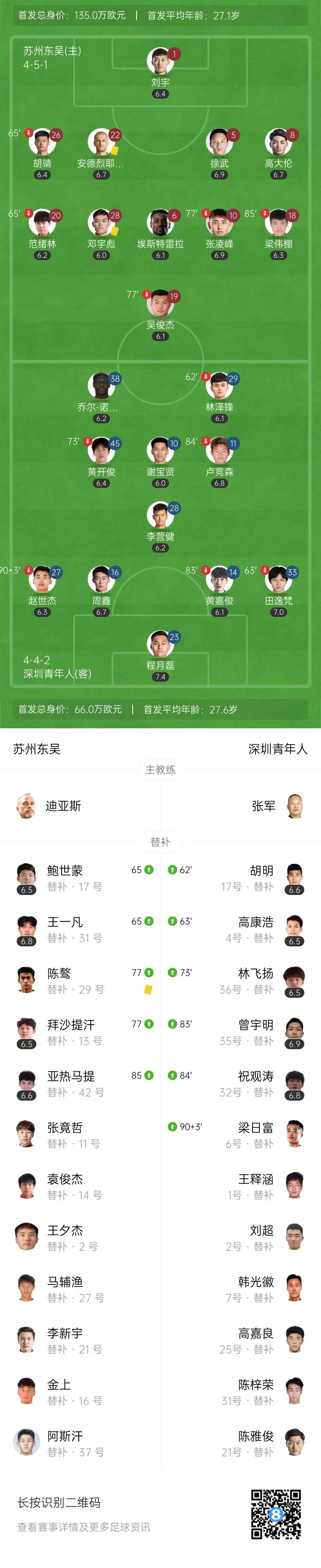 第71分钟,东吴左路传中,张竟哲后点头球攻门顶偏。↓