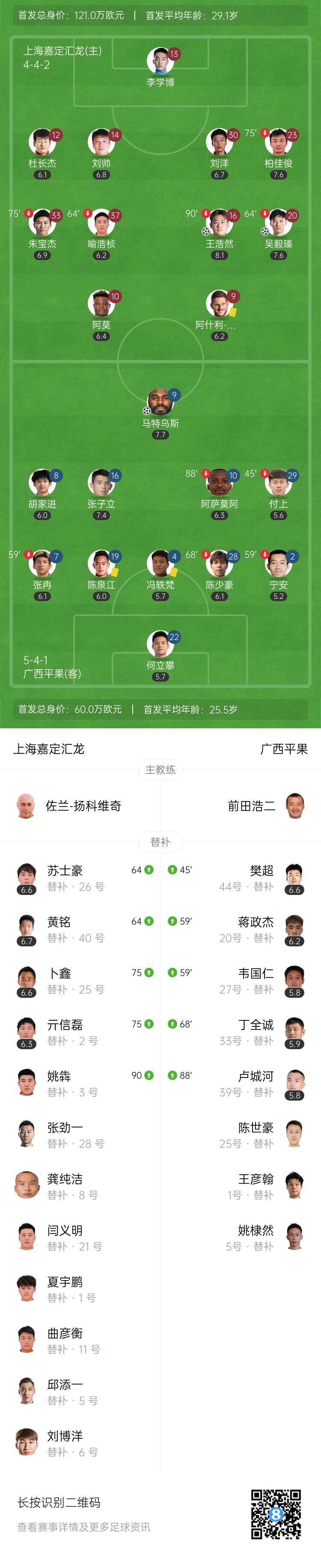 伤停补时7分钟。全场比赛结束,上海嘉定汇龙3-1广西平果。