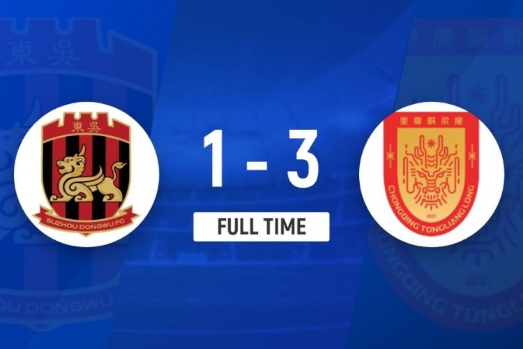 伤停补时8分钟。全场比赛结束,苏州东吴1-3重庆铜梁龙。