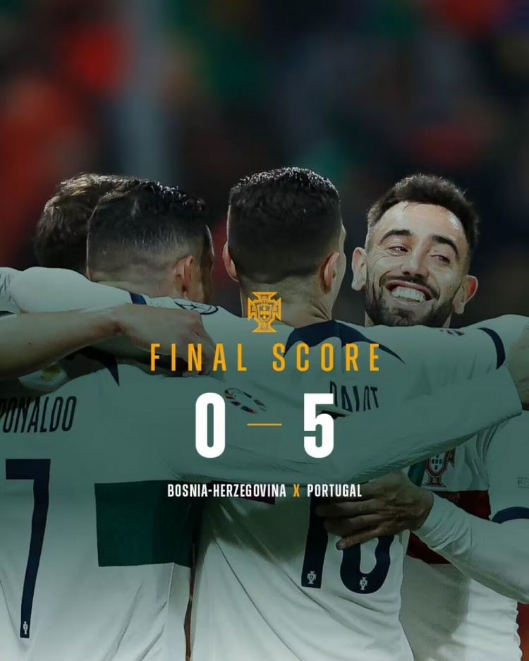 下半场伤停补时2分钟,全场比赛结束,最终葡萄牙5-0波黑。