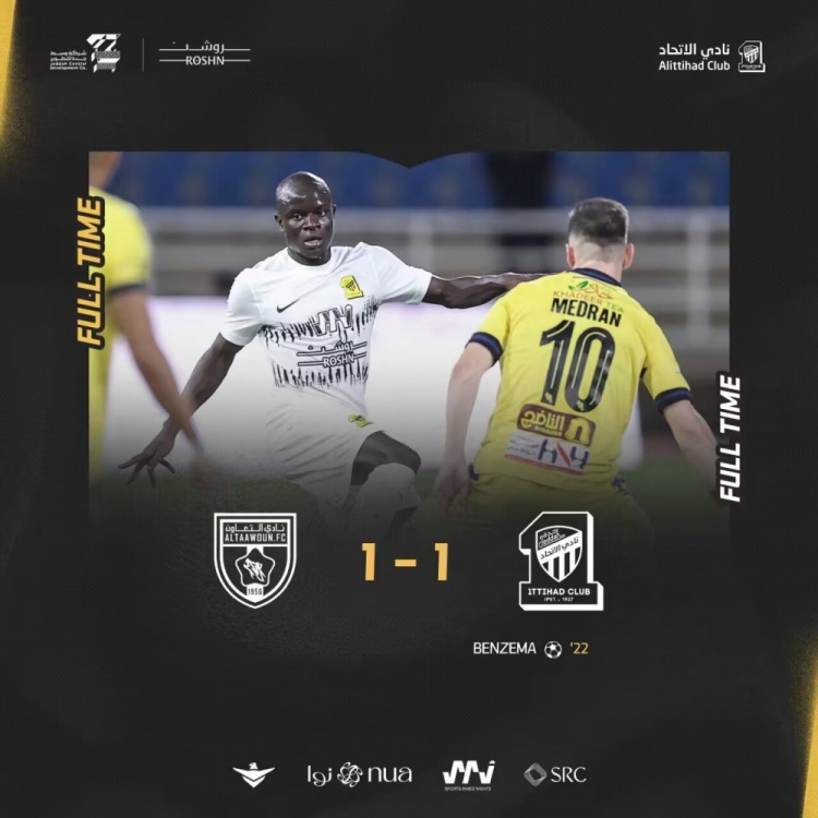 吉达联合首发:34-格罗赫、3-路易斯-费利佩、12-扎卡里亚-豪萨维、13-山凯蒂(75'33-奥拉扬)、28-巴沙特、14-纳什里、10-科罗纳多、7-坎特、90-罗马里尼奥、99-哈姆达拉(75'77-阿姆里)、9-本泽马