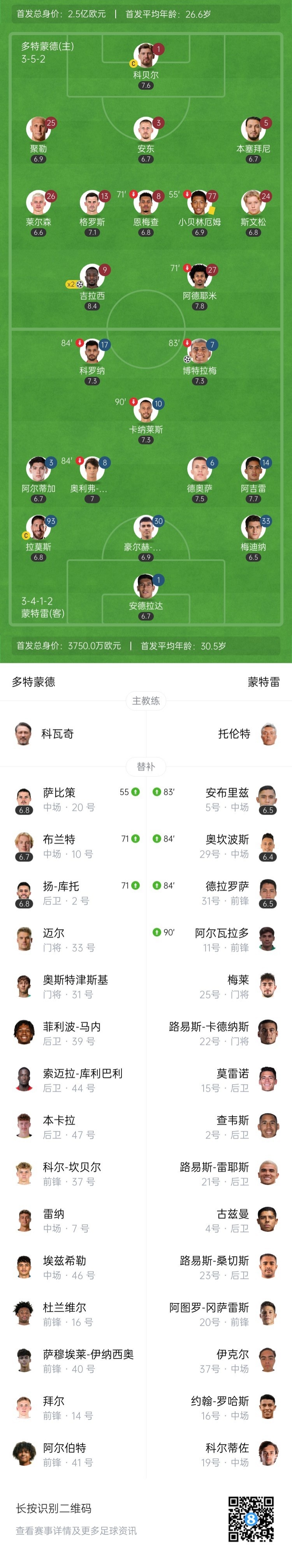 7月2日讯 北京时间9:00,世俱杯1/8决赛多特蒙德vs蒙特雷,比赛在梅赛德斯-奔驰体育场打响!上半场,阿德耶米两送助攻,吉拉西梅开二度;科罗纳击中横梁!小贝林厄姆染黄停赛;随后吉拉西又错失了戴帽机会!下半场,埃里克-阿吉雷助攻加梅-博特拉梅迅速扳回一球;随后博特拉梅单刀破门但越位无效!最终,多特2-1击败蒙特雷,晋级世俱杯8强!1/4决赛将对阵皇马!